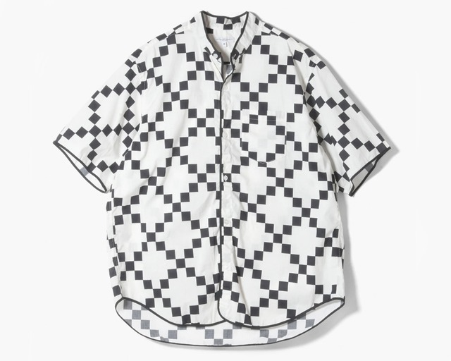 "ENGINEERED GARMENTS"を代表する定番ボタンダウンシャツ。重なり合うようにラウンドした裾のデザインや、脇下のガゼット、深く取られたサイドスリットなど、クラシックなドレスシャツに見られるディテールが多数取り入れられています。縫製は手間と時間のかかるシングルニードルで行われており、縫い目の美しさと高い耐久性を兼ね備えています。モノトーンのチェッカープリントがモダンな印象の一着です。 コットン 100% S - 身幅 60cm、着丈 83cm、袖丈 59cm M - 身幅 62cm、着丈 86cm、袖丈 62cm *手作業での採寸と洗い加工の縮みによる、若干の誤差はご了承下さい。