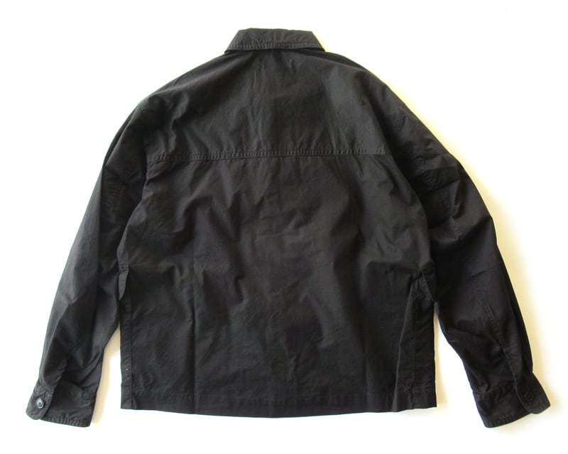 UKミリタリーのフライトジャケットのイメージに、過剰なディテールを省き街着として着れるようにアレンジしています。衿は開けてもきれいに見えるようなデザインで、スッキリとした丈感とワイドからテーパードまでボトムとの組み合わせで新鮮なバランスが楽しめる仕上がりです。細い糸を使い綾織で目を細かく詰める事で、しなやかな肌触りと自然な光沢感が特徴のコットンギャバジンです。