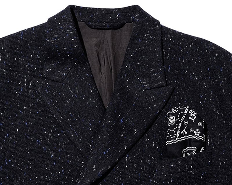 Loro Piana FABRICを使用したジャケットです。Loro Pianaの奥行きのある生地は、表情豊かで軽い着心地です。胸ポケットのスレキは、ヴィンテージバンダナを使用しております。