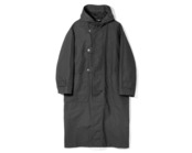 今季コレクションでも、ひと際目を引くダッフルコートは、従来より着丈を長くとり、NYのアイコニックなアイテムであるマキシレングスコートやモーニングコートを表現しました。厚手で強いハリ感のあるコットンダブルクロスを採用することで、特徴的なシルエットを引き立てる仕上がりです。