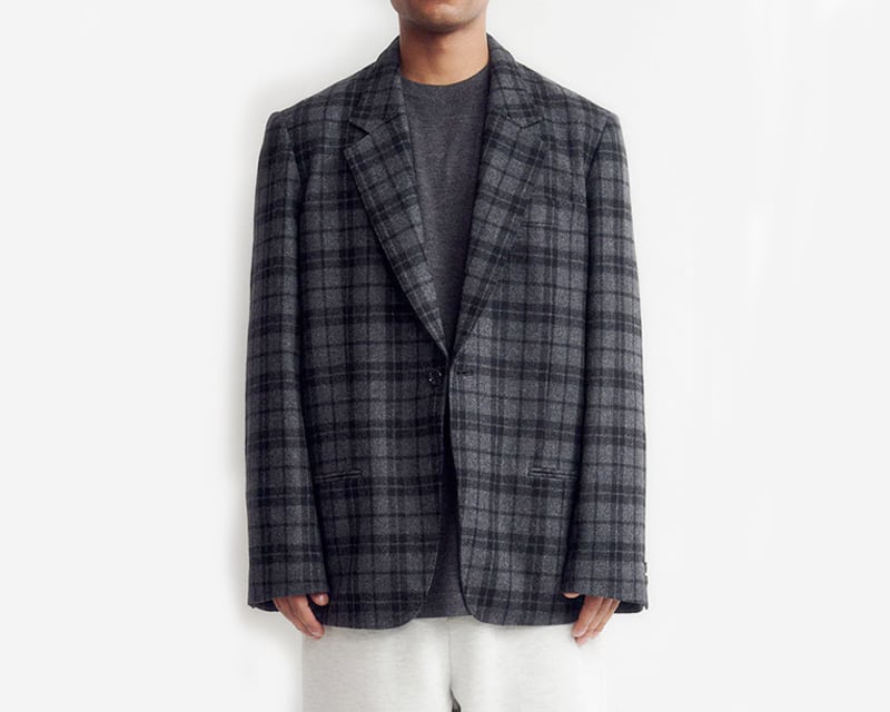 フォーマルなディテールを持ちながら、随所にヌケ感とリラックス感を持たせたジャケットです。起毛感のあるチェック柄の生地は素材感も良く、着こなしの中心的なアイテムとなります。共生地のSide adjuster pantsで、セットアップ可能です。