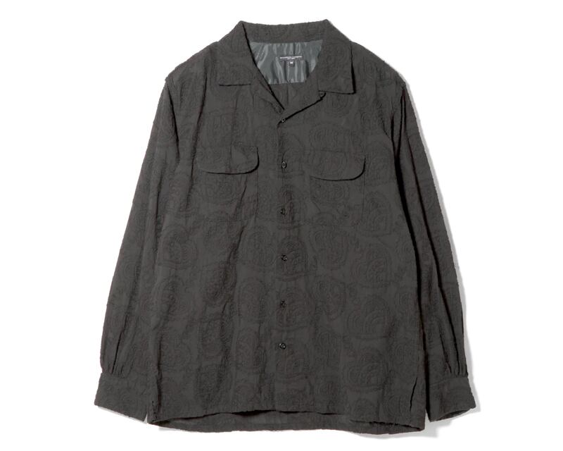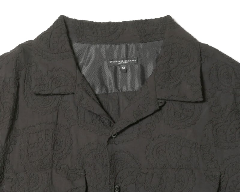 オープンカラーに裾がスクエアにカットされたボックス型シルエット、両胸のパッチアンドフラップポケットが特徴的なデザインのクラシックシャツです。抜け感のあるカジュアルなデザインで、気軽かつデイリーに着用できるユーティリティ性の高いアイテムです。同色で大胆に刺繍されたペイズリー柄がシックで華やかなファブリックです。