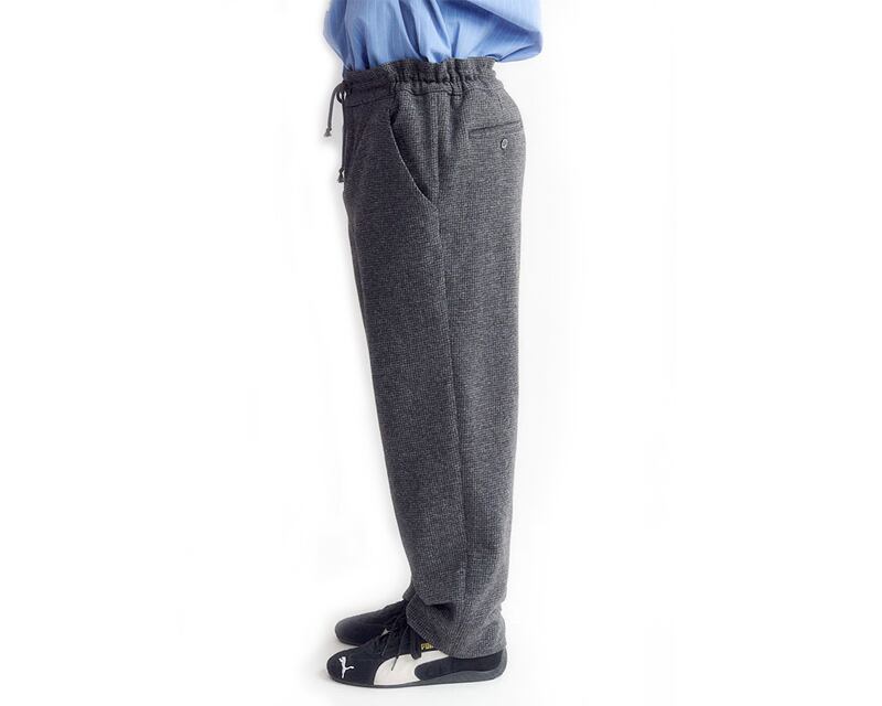 リラックスしたシルエットのイージーパンツです。ウエストの両サイドにギャザーを入れ、コードでウエストを調整出来ます。足元にたまらない程度のコンパクトな丈感です。
