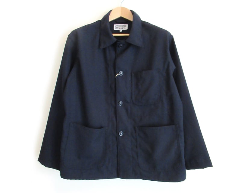 定番デザインとなっているユーティリティジャケット。シンプルで簡素な作りですが、ワークウェアらしい機能的なディテールが特徴のアイテムです。ウールのドレープ感と軽快な着心地が特徴の生地です。