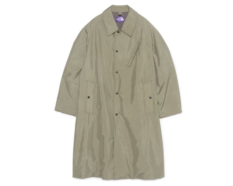 リサイクルポリエステルタフタを使用したステンカラーコートです。表生地に自然なシワ感が出るように加工を施しております。中わたは、保温性と軽量性に優れたPRIMALOFT® Silver Insulationを使用。腰ポケットは内側にアクセスできるスルーポケット仕様で、やや長めの膝丈で身幅、袖幅にゆとりを持たせたリラックスシルエットに仕上がっております。