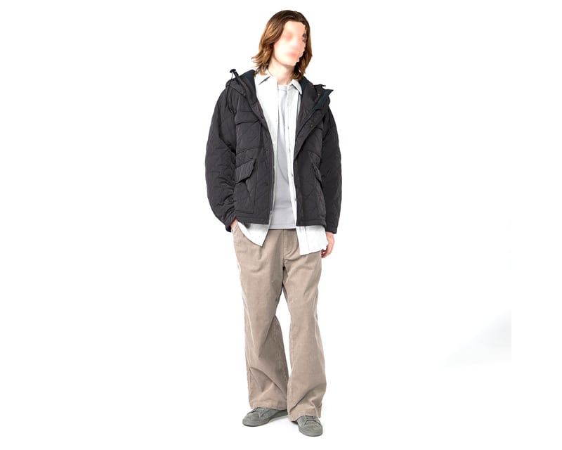 リサイクルナイロンタフタのキルティング素材を使用したマウンテンパーカです。中わたは、保温性と軽量性に優れたPRIMALOFT® Black Insulationを使用。定番のマウンテンパーカよりもハーフサイズほど大きいサイズ感に仕上がっております。