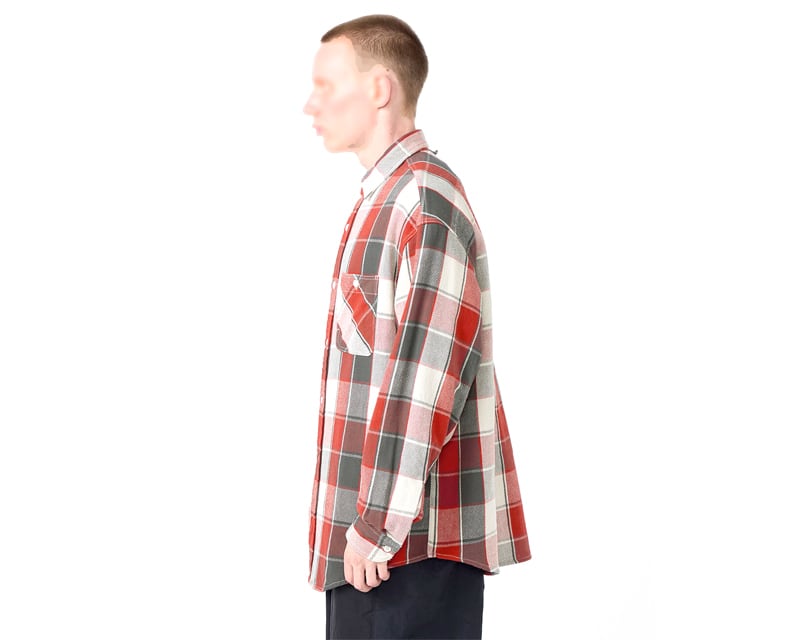 オーガニックコットンフランネルチェック生地を使用したレギュラーカラーシャツです。太番手の糸を甘織りすることで、厚みがありながらも柔らかい風合いです。肩幅と身幅にゆとりのあるフィットとなります。