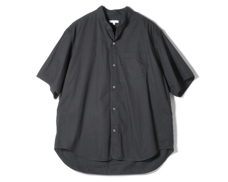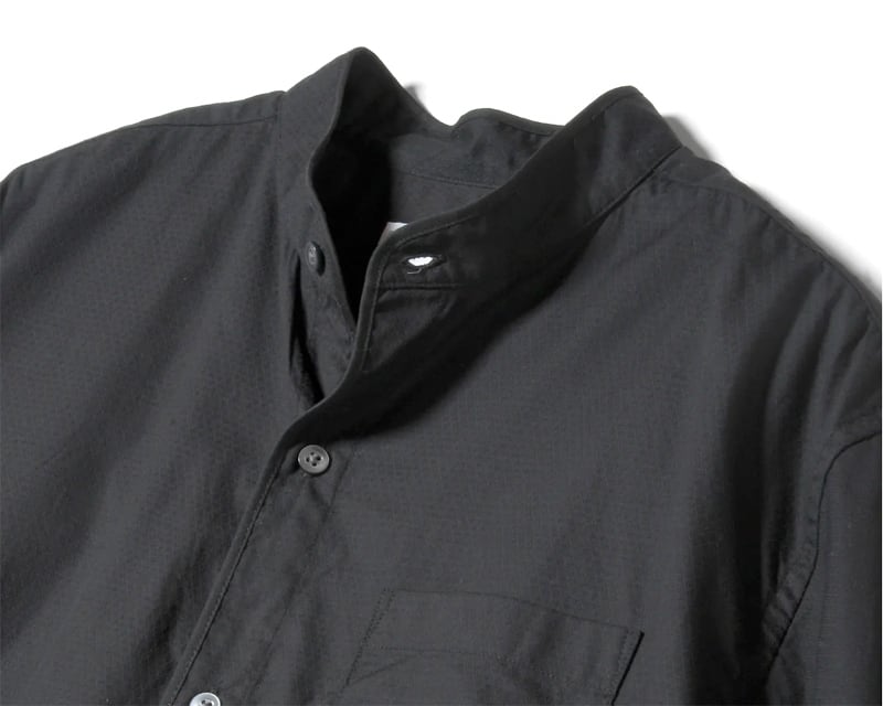 首元がバンドカラーで、スッキリとした印象の半袖シャツ。生地の端にはパイピングが施され丸みのある印象に仕上がっています。細やかなドビー柄が上品な印象で柔らかい肌触りです。