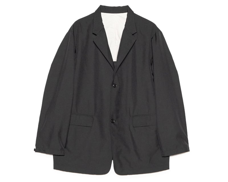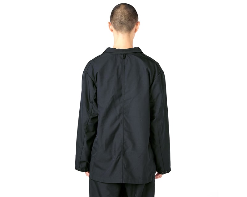 表地にポリエステルカルゼを使用した2つボタンジャケットです。裏地には生成りカラーが特徴のオーガニックコットン/クールマックス®エコメイドツイルを使用。軽やかな印象の生成りとストライプの袖裏がポイント。製品洗いを施すことで古着のような風合いで、ゆったりとしたリラックスフィットです。