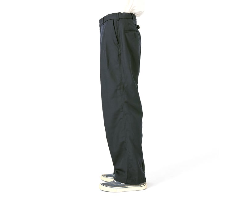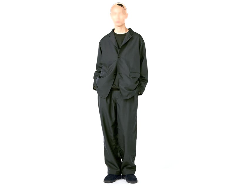 表地にポリエステルカルゼを使用したワイドストレートカットの2タックパンツです。製品洗いを施すことで古着のような風合いを表現。ウエスト内側にドローコード仕様。股下には脚の可動域を広げるマチ付きです。セットアップ可能な、Polyester Twill Club Jacket ございます。