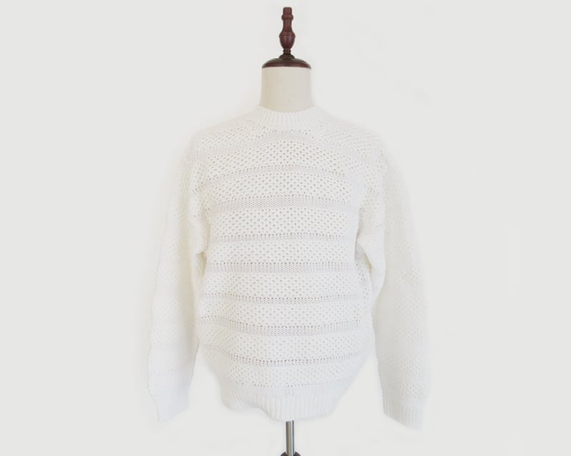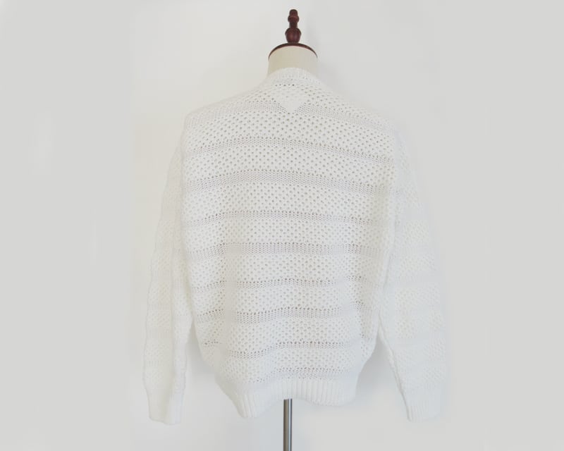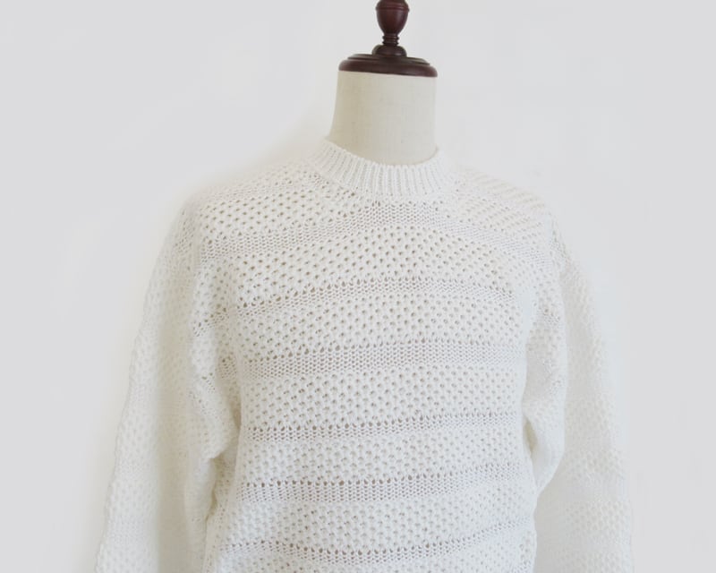 様々な編み方でボーダー柄を表現した、ローゲージニットです。